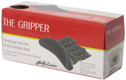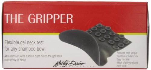 Flexible gel neck rest fits any shampoo bowl, extension with suction cups holds it firmly in place. No clips or adhesive. Made of polyurethane, non-toxic.