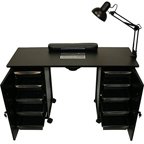 This nail table also comes with an electric downdraft nail vent so you can minimize dust when filing and suck away noxious chemical odors. The table also comes with a FREE LED technician lamp.