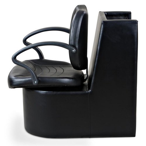 This classic dryer chair with leatherette cushioning and stylish black arms is a great alternative to wall mount and rolling mobile dryers and will flatter any decor. These chairs are stationary and attach easily to most standard box dryers, creating the look of a built-in dryer unit.