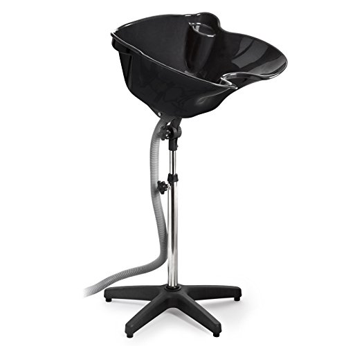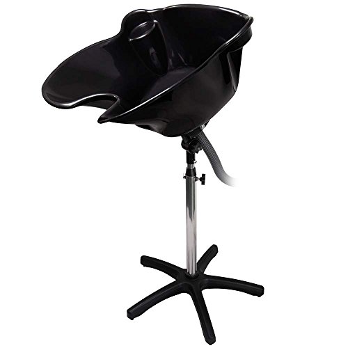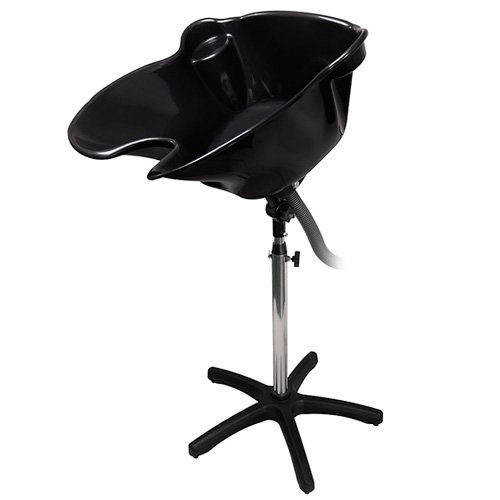 This lightweight, portable shampoo basin is constructed of durable ABS composite with a rolled edge for both strength and client comfort. The bowl has a large capacity, and measures 20" front to back, 19" across and 9-1/2" deep. It connects to the base with a sturdy steel bracket. The pedestal has a 1-1/2" diameter, chrome metal riser with five legs that form a 22" diameter base. Composite feet/bumpers are included on the bottom of the stand to protect floors from marks. The sink can be permanently installed in a salon, or can be carried to a client's home for portable use (supply your own water source such as a water pitcher or hose, and basin may be drained into a bucket). A rubber plug stopper is included that fits the drain opening at the bottom of the basin, and a flexible, ribbed drain hose (60" long x 1-1/4" diameter) connects to the underside of the basin. Sink is adjustable to accommodate reclining or standard chairs. It tilts front or back and can be raised or lowered from 39" to 55" (measured from floor to top of basin when level). The neck rest dips to as low as 33" from the floor when titled, so this unit can be used with just about any chair. Includes basin with stand (minor assembly required), drain hose, drain hose clamp and instructions.